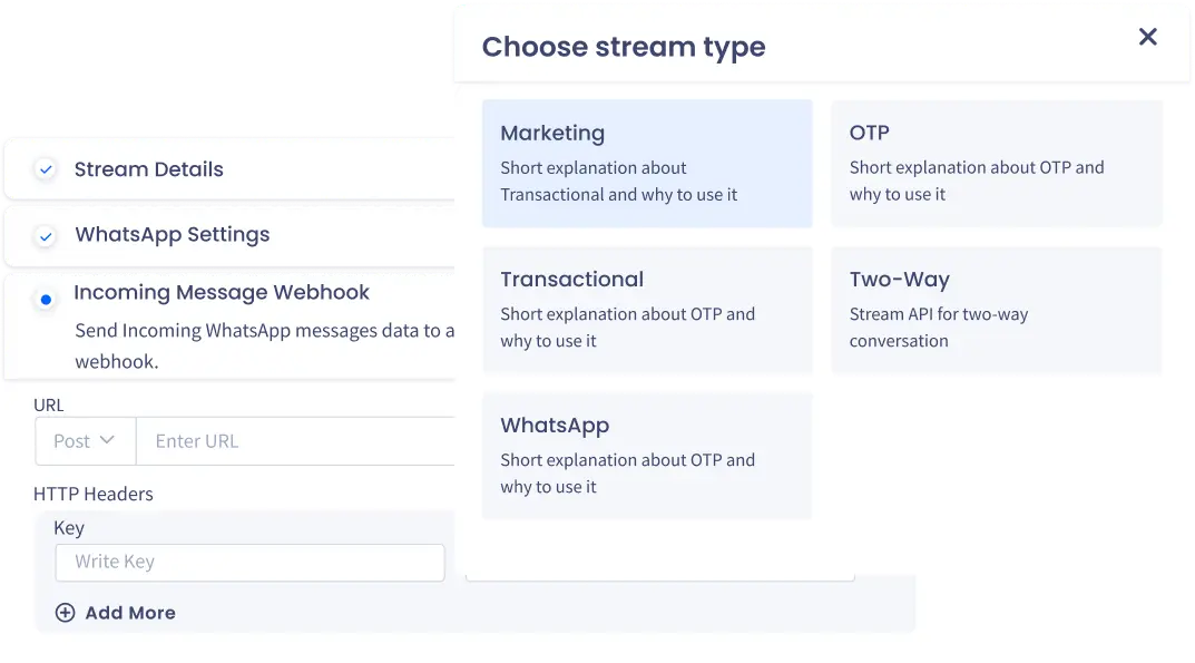 Expand your prospects and increase your customer engagement with our cost-effective and high-quality SMS API options. Connect with new clients with our marketing, transactional, and OTP streams!